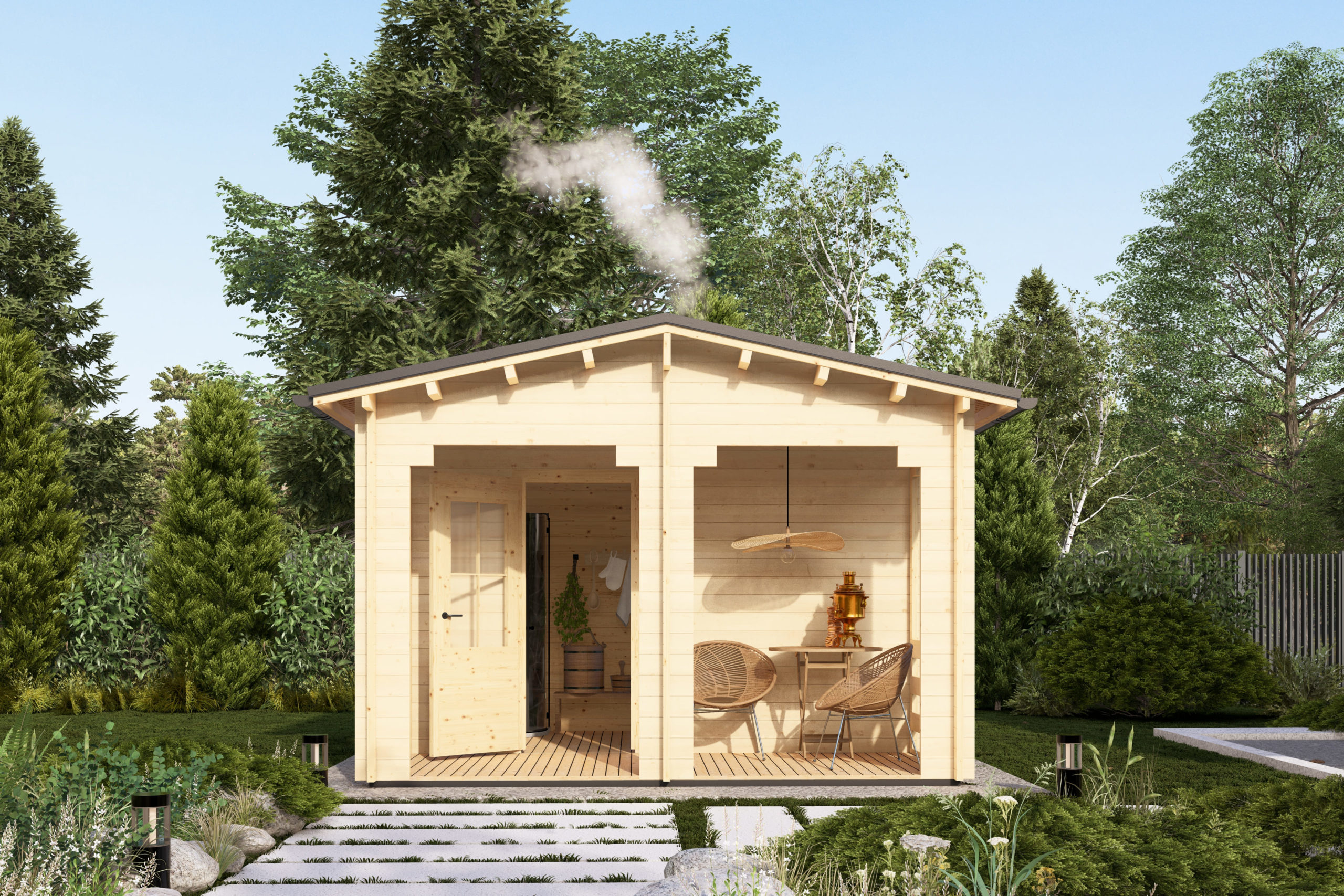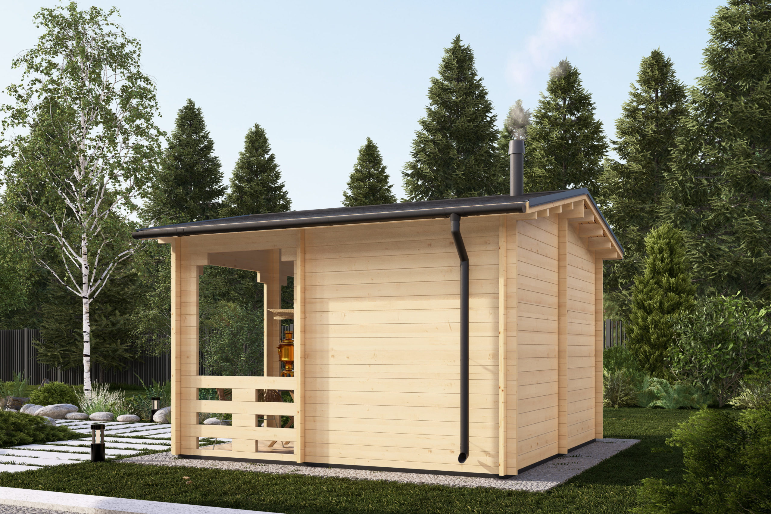 Просторная баня для загородного участка — это не просто место, где можно попариться, а полноценная зона отдыха и восстановления. Здесь удобно продуманы парная, моечная и комната отдыха: можно разместить лавки, полки для банных принадлежностей, дровник и всё, что нужно для комфортных процедур. Такие проекты подходят и для семейных вечеров, и для встреч с друзьями — когда важны тепло, уют и атмосфера. Баня из массива сосны — это про натуральный аромат дерева, мягкий микроклимат и отдых, который действительно ощущается телом.
