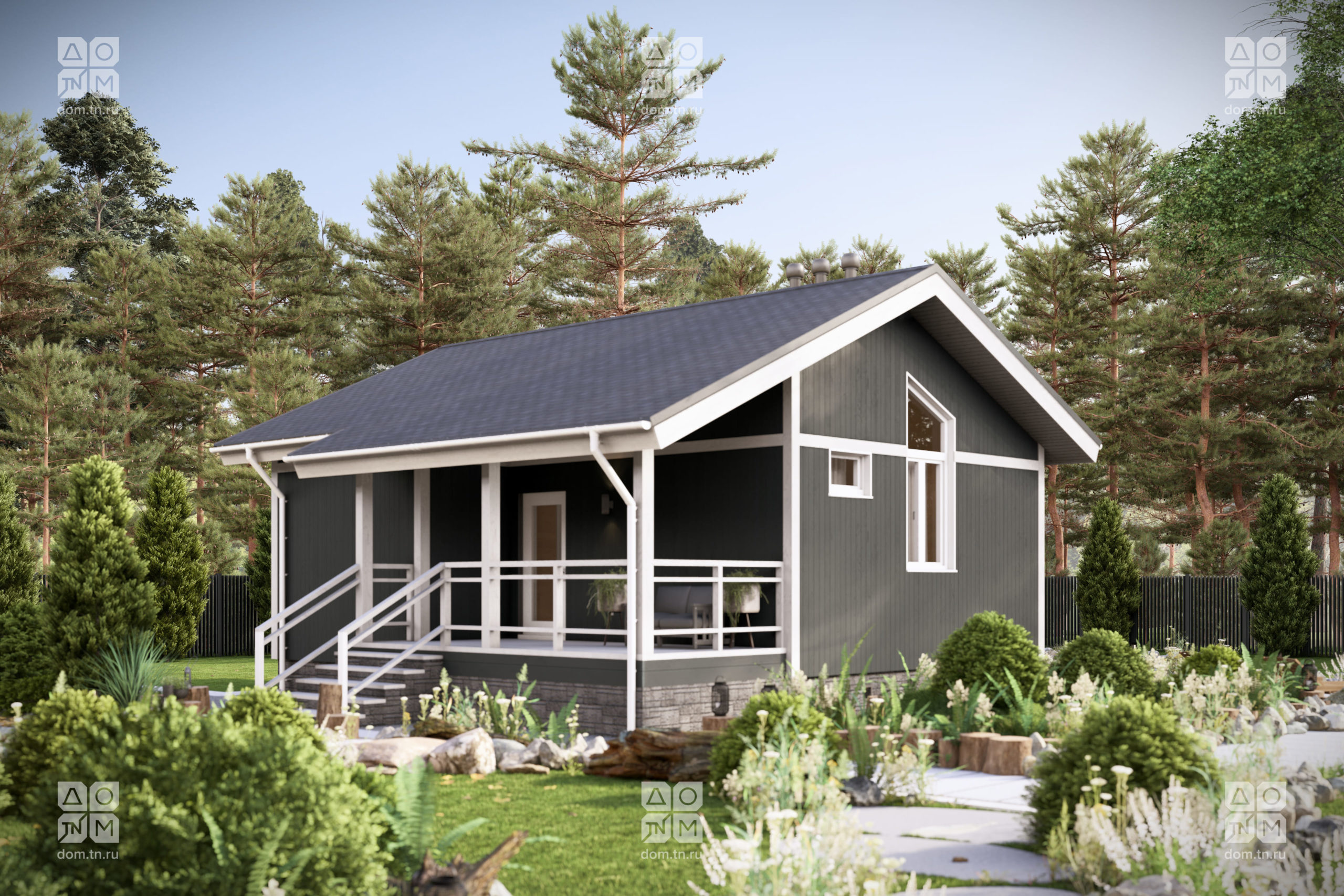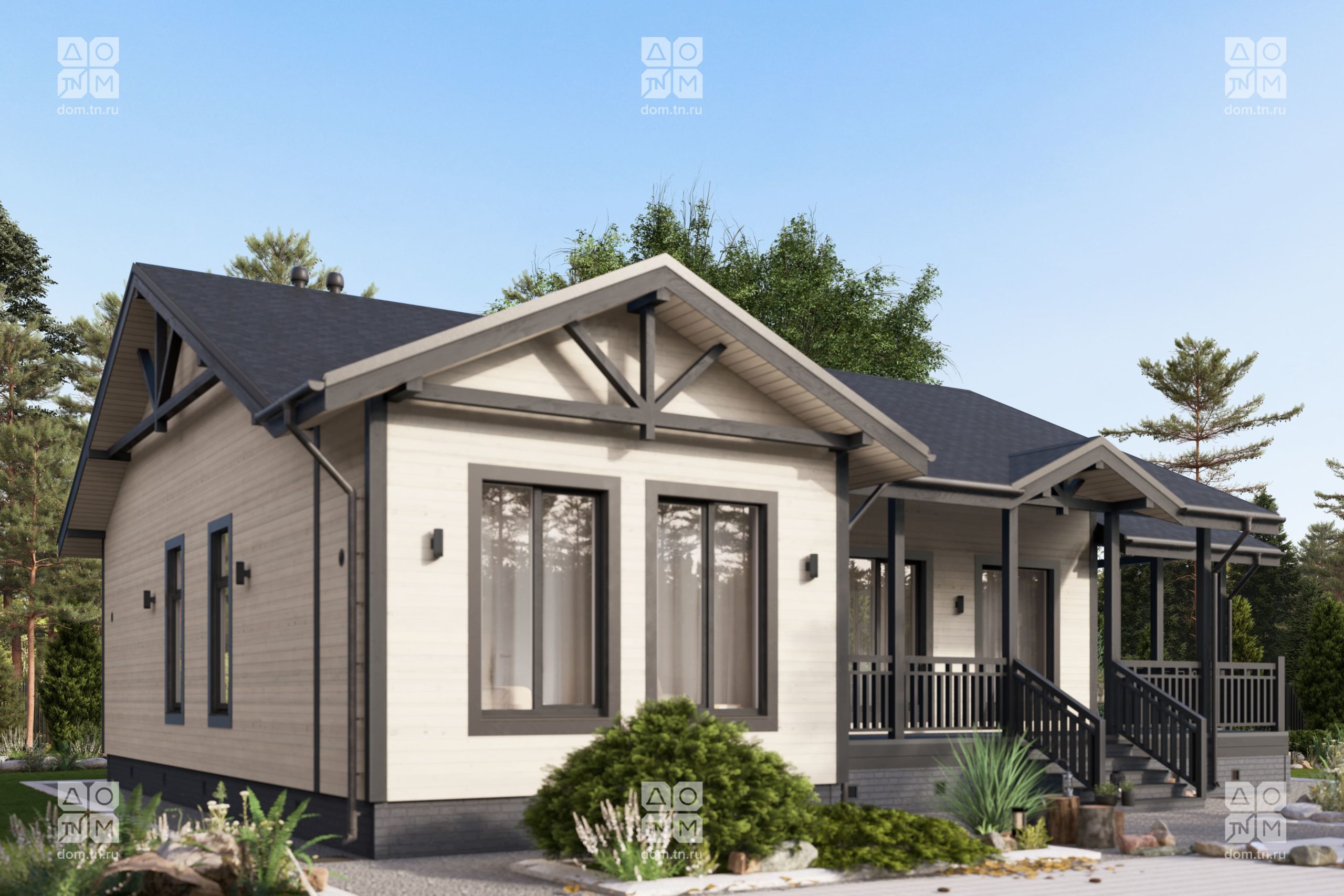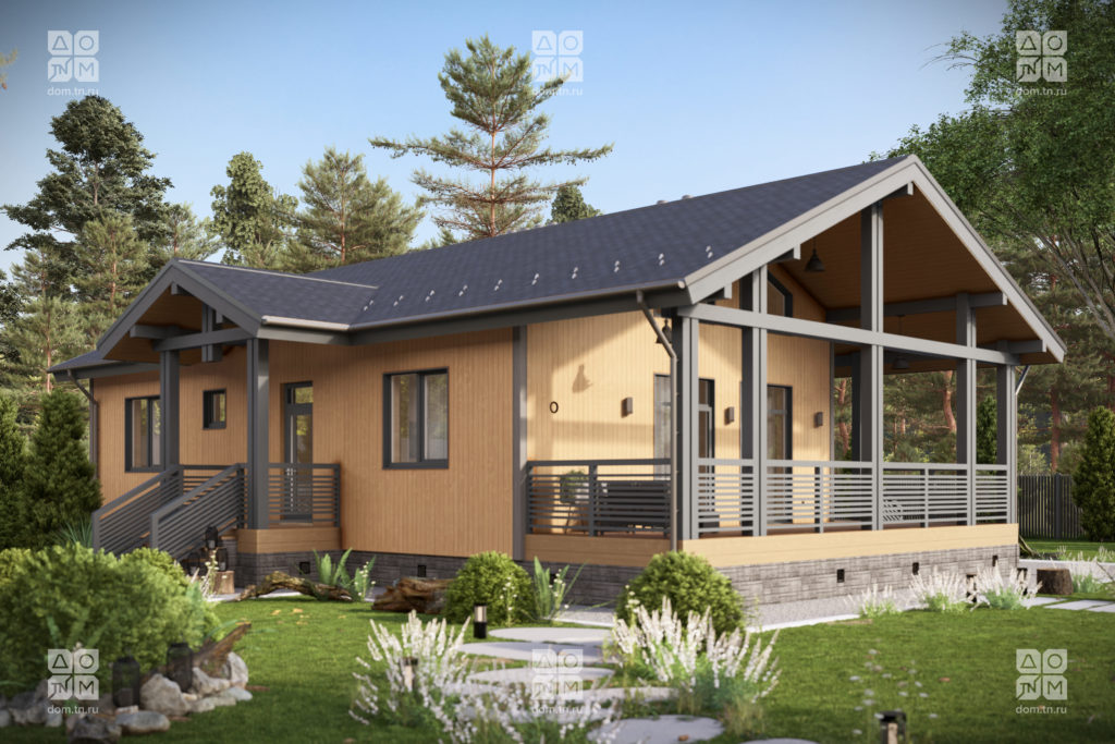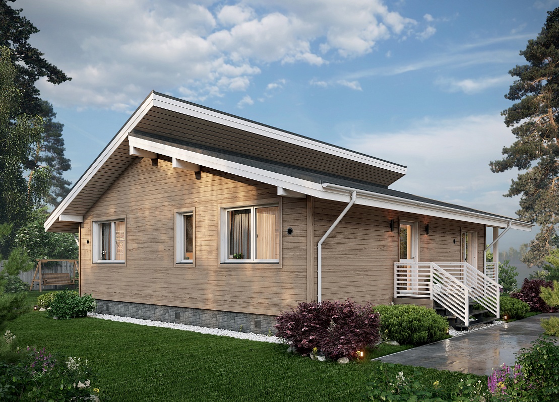 вход ведет в жилую зону, дополнительный — на террасу. Конструкция выполнена с использованием современной каркасной технологии, обеспечивающих высокую прочность и энергоэффективность. Пространство дома спроектировано для