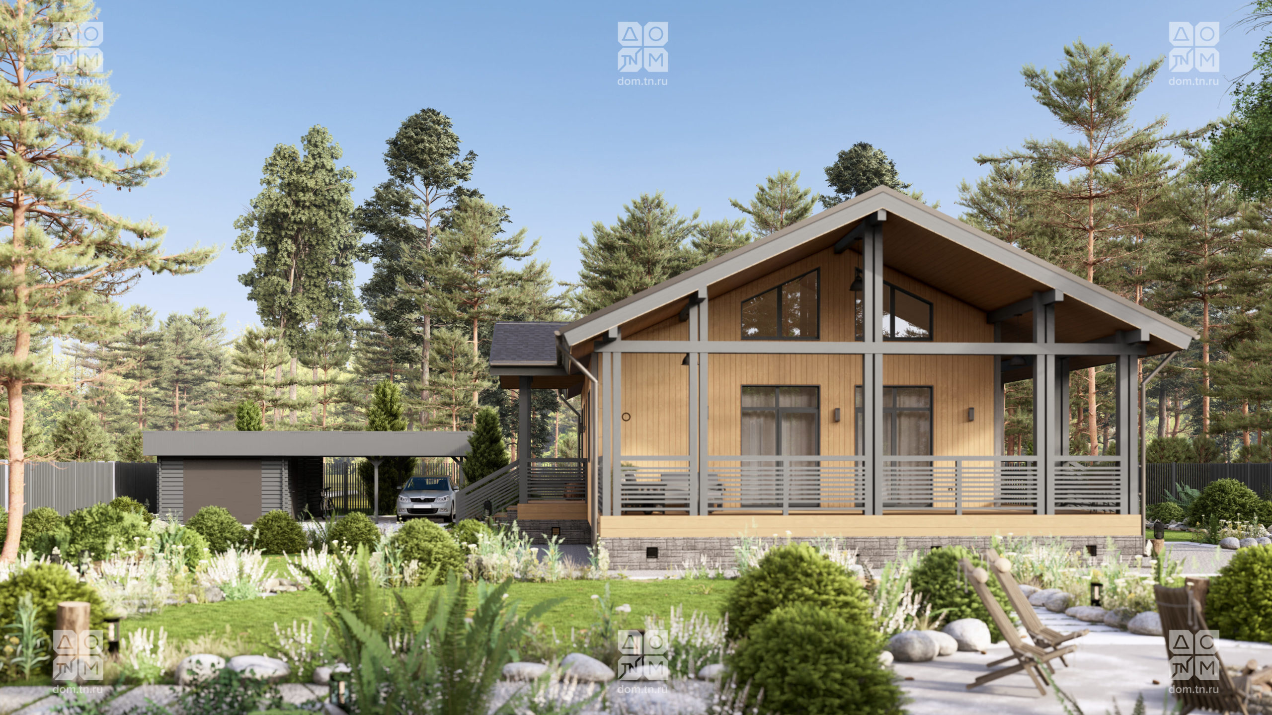 и большой террасой с навесом. Классический скандинавский
