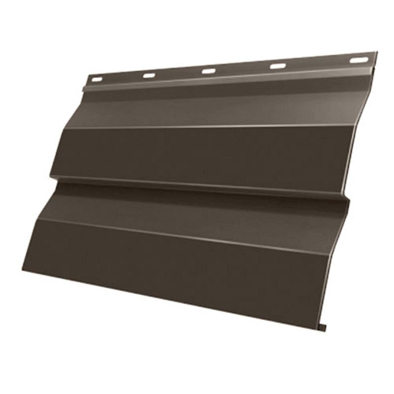 Металлосайдинг Корабельная доска Полиэстер RAL8019 выполнен в популярном профиле «корабельная доска», также известном как «корабельный брус». Он имитирует ровную горизонтальную деревянную обшивку и считается классическим решением в фасадном сайдинге.