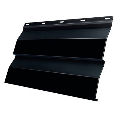 Металлосайдинг Корабельная доска Полиэстер RAL9005 выполнен в популярном профиле «корабельная доска», также известном как «корабельный брус». Он имитирует ровную горизонтальную деревянную обшивку и считается классическим решением в фасадном сайдинге.
