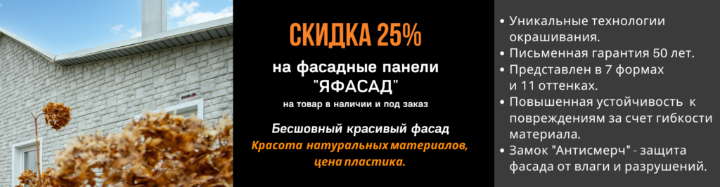 Скидка 25% на фасадные панели «ЯФасад» и комплектующие к ним.